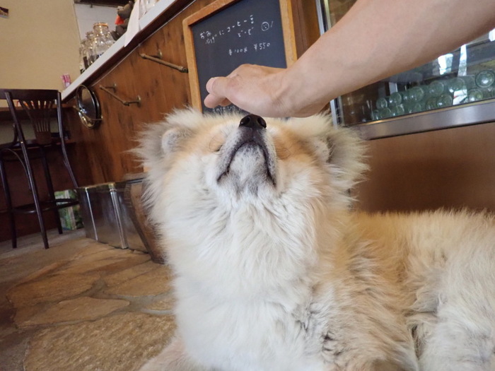 お客さんのわんこも、看板犬さんもカフェスペースでなかよくですミャ