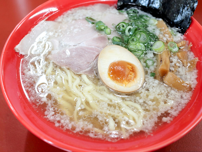淡い黄色で透き通るスープは、塩系スープの典型のように感じました。所謂清湯スープは、国産牛すじ肉を煮込んだそうです。飲みやすく美味しい味わいでした。麺は中太ストレート麺の類だと思います。程好くコシを感じる茹で加減で、スープが美味しく絡んでいました。トッピングはチャーシュー、ゆで卵、かいわれ大根、海苔、白髪ねぎ、青ねぎでした。チャーシューは牛もも肉を低温調理したもので、レアな仕上がりがローストビーフのようでした。それをスープに浸していただくと美味しかったです。