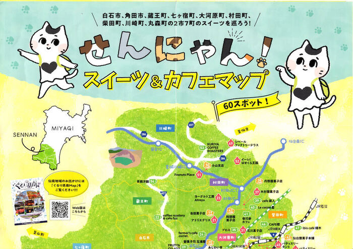 宮城県南部「仙南地方」のスイーツ・カフェ店が紹介されているマップのお店をご紹介しますミャ。いちぶ「せんにゃんスイーツ&カフェラリー」参加店舗と重複しますミャ。