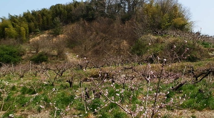 中央のしだれ桜に 早咲の河津桜を眺めながらうどんが食べれる
