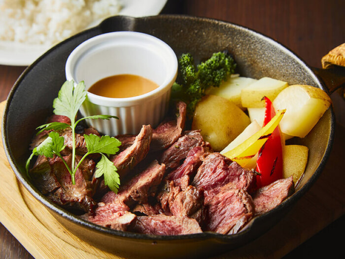 絶品の牛ハラミステーキ重、ローストビーフ、牛ハラミのステーキ、トマト&モッツァレラチーズのマルゲリータなど豊富な肉メニューを中心としたランチメニューをお得にご堪能頂けます。