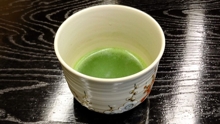 お茶は静岡の山間で栽培された「天空の抹茶」と名付けられたお茶とのこと。お抹茶らしい風味が一口一口鼻腔を通りにけて行くような感じがします。