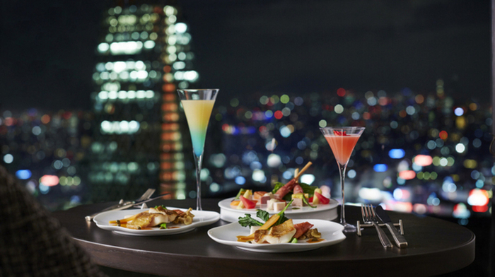 季節の食材を使用したフレンチと厳選ワインを地上210mから眺める東京の景色と共にお楽しみください。