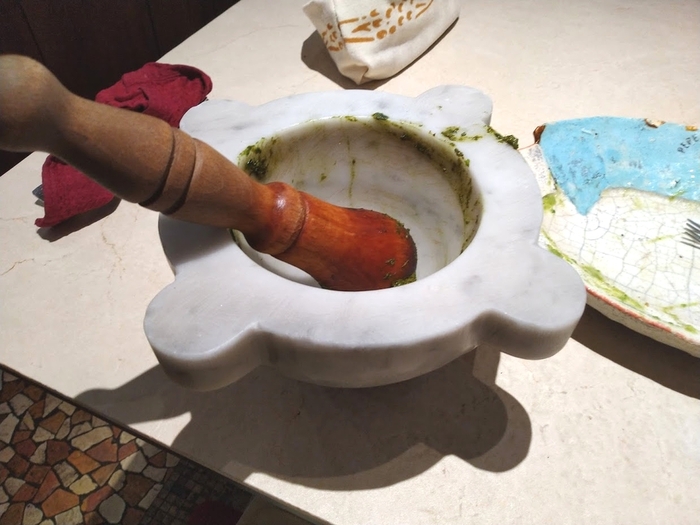 ●ペストは大理石モルタイオでの調理です。ちなみにこのモルタイオは、三軒茶屋時代にも使われていたようです(マーブル模様が同じ)。