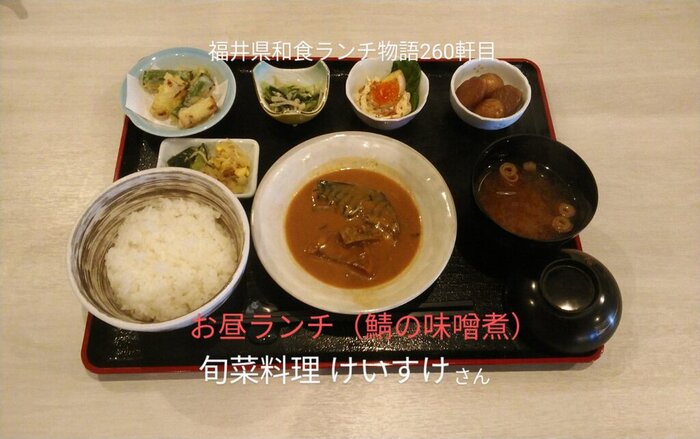 次の写真は、『旬菜料理 けいすけ』さんの“お昼ランチ(鯖の味噌煮)”です。