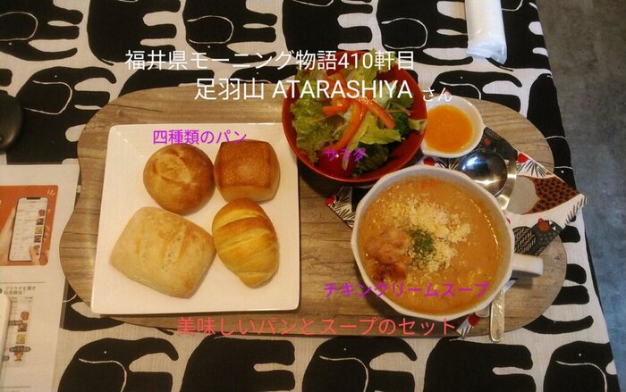 次の写真は、『足羽山ATARASHIYA』さんの「美味しいパンとスープのセット」です。