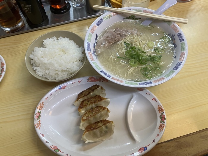 前回ラーメンとご飯のセットにしたけれど、今回はシンプルにラーメンと餃子ぐらいは食べますか。これだけ食べても450円。