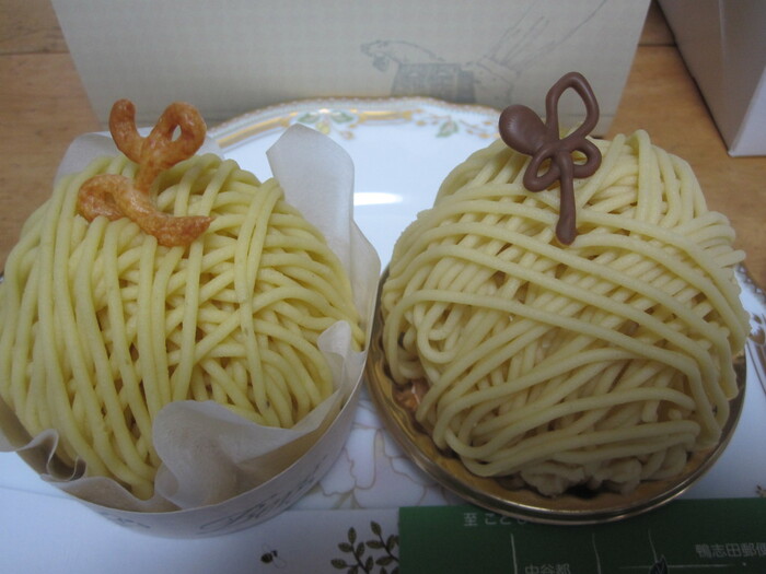 昭和のモンブランは黄色かった スポンジの上に黄色いクリームがぐるぐる巻きになって 栗の甘露煮がちょこっと乗っていました 気がつけばそんな『黄色いモンブラン』は姿を消してしまいました さ~どこへ行ってしまったか探してみましょう