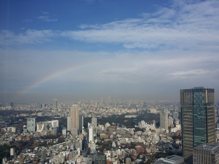 都内に大きな虹がかかっていました