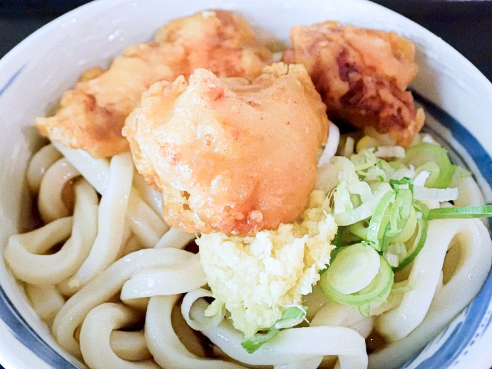 うどんは私の基準でやや細めで、角がはっきりした冷系ならではのコシを感じる美味しいうどんでした。ぶっかけ出汁も好みの味で美味しく、しっかりした味が最後まで鶏天の油分に邪魔をさせずに美味しさを保っていました。鶏天は細長いタイプで、見た目から硬さがあるだろうと思いましたがいい感じの柔らかさがあって、食感良く美味しく揚がっていました。その鶏天を美味しいぶっかけ出汁に浸けて食べるとこれまた美味しかったです。