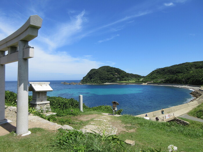 晴れて空気の澄みきった日には、水平線のはるか先に沖ノ島を望むことが出来ます。