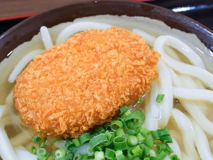 うどん名をコロッケうどんにしていますが、正式にはかけうどん+コロッケです。かけうどんを食べる際に”そのまま”という食べ方が好きですが、コロッケうどんの場合はそのままではなく温かいうどんの方が合うように感じました。※食べログ上では『このまとめ記事は食べログレビュアーによる口コミを参考にまとめました。』と記されていますが、それらを参考にはしていなく、讃岐うどんのコロッケうどんを食べた記録です。