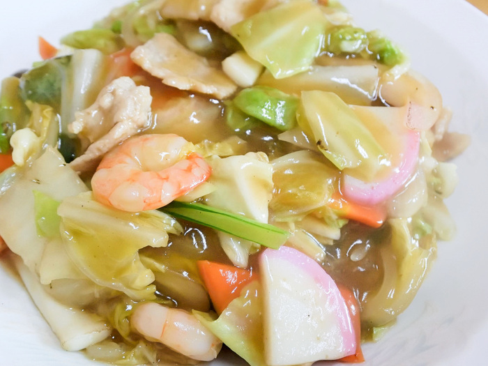 味は中華ならではの味…上手に表現出来ませんが、中華ならではの味わいでした。中華あんは前半はとろみがあり中盤以降はさらッとに変わりました。白菜、人参、玉葱などのスタメン的野菜と、厚めの豚肉、海老が入っていました。このての料理は熱さによるやけど注意です。仮に火傷をしたとしたなら美味しく食べた名誉の負傷だと思うようにしていますが、火傷をさせたのは熱さを考慮せずに口へ運んだ自分です。今回も熱さを考慮しない自分の浅はかさを感じました。