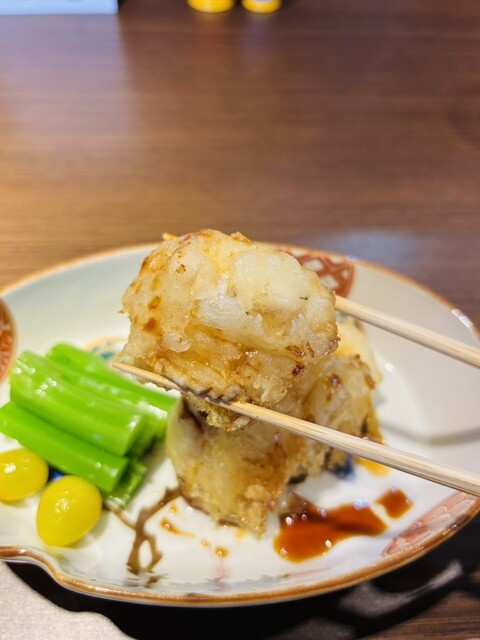 身がプリッとして、凄く美味しかったです。上にかかっている甜醤油との相性抜群でした。