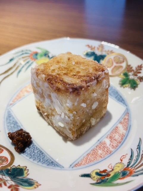 干しエビの粉、椎茸の粉を入れ、魚介の旨みとお米の甘味が合わさった大根餅。