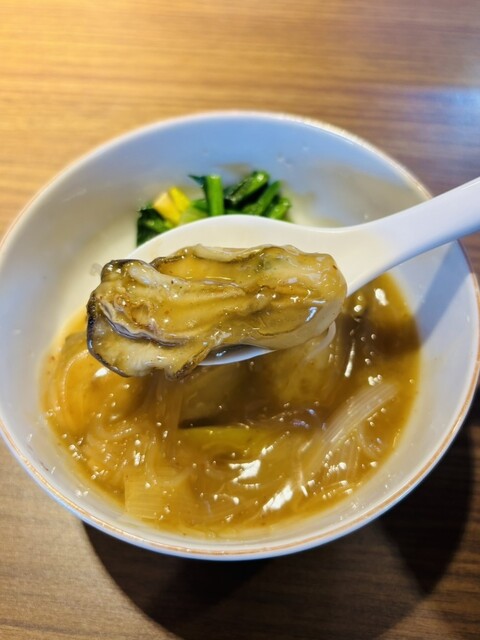 宮城県奥松島で取れた鳴瀬牡蠣を使用し、身のプリッとした感じがたまらなく最高でした。味付けがピリ辛だったので、ほうれん草の甘味をより感じることが出来ました。