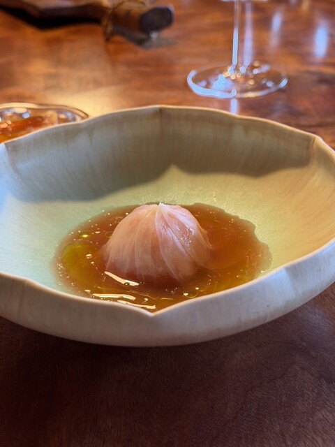 お料理は長野県の食材を中心としたの季節の旬の素材の使用しており発酵技術を駆使して、一品一品がお皿が変化に富んでいてどのお料理も唯一無二で絶品。毎回ノンアルペアリングで訪問していますがドリンクも自家製でお料理との相性に合わせて調味料の一つになっているかのようなアプローチ。ノンアルペアリングが素晴らしく、お料理のソースとして機能。毎回感動します。