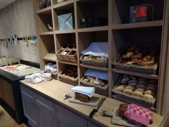 パンは歯ごたえのあるもの、やや乾燥しているので牛乳が欲しくなります。