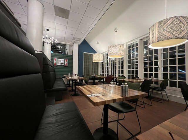 メニューのメインはハンバーガーやピザが多く、ほかには、お魚とビーフがありましたが、大量には食べられないので、半分にできないかと尋ねたら、デスパレートな妻たちのガブリエルに似たサーバーさんができないって、スターターメニューなら少ないからどうですか?って。