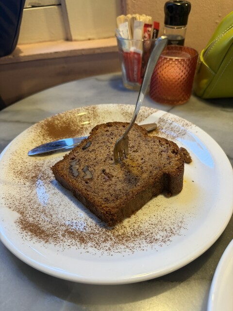 連れが注文していたバナナブレットはフォークが突き刺さって出てきて、少しカルチャーショック。別に嫌がらせではないです。