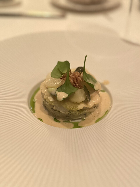 ⑧根セロリクリーム、ベルジュのソース、黒ニンニクチュイール