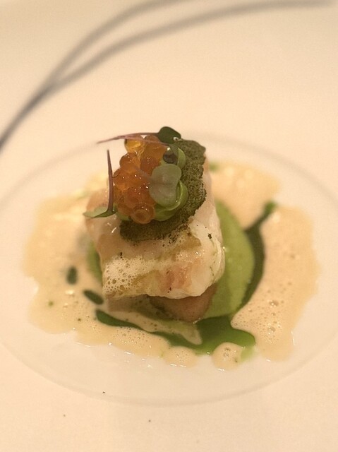 ⑩アンコウ、コールラビ、ブールブランソース、いくら