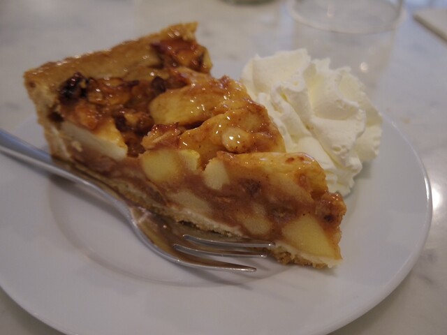 お豆のスープに、ホロホロに煮込まれたお肉の煮込み、オランダ名物のにんじん入りマッシュポテトをいただきました。デザートは生クリームたっぷりの特大アップルパイでした。