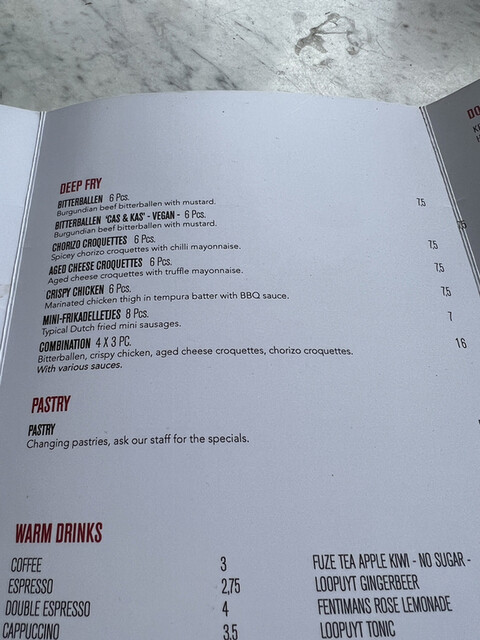 メニューでは、どちらもdeep fry にカテゴライズされてる。どちらにしようか迷った末、ビーフが入ったbitterballen を試してみることに。