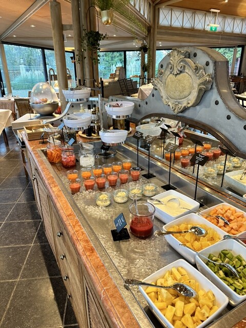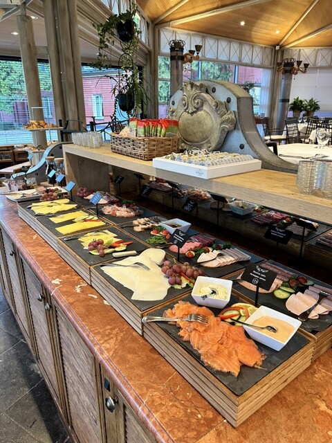 かなりゴージャスな雰囲気の店内。期待が高まります!きのこクリームにトリュフオイル、サバの炙りに海草クリーム、菊芋は温かいグリルで甘味と香りが立っています。牛肩肉のグリル。なじみ深い食材が続きました。どれも丁寧には作っているので美味しいです。ソースもまずまずと言ったところでしょうか。ただ意外性や驚きが無いですね。かなりスタンダードなフレンチです。デザートは1品、小菓子も少々でしたので、ちょっと消化不良でしたかね~。料理は全て美味しいですよ。でも日本で食べるフレンチとあまり変わらない。まぁ105€のコースですから高望みは禁物ですが、ベルギー古城ランチと比較するとちょっと見劣りしちゃいましたかね~。古い邸宅はとても良いですし、静かなホテルでの宿泊も満足です。しかしディナーは記憶に残りづらかったです。