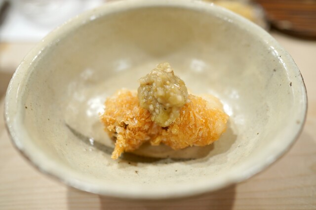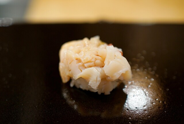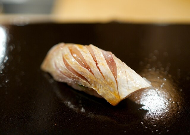 おまかせコース ※○は肴、・は握り ○レンコンのおかゆ ○ブリの焼き霜 カブとリンゴのソース ・アオリイカ ・南蛮エビ ・メダイ ○マダラの白子 ○煮穴子天ぷら... 詳細を見る