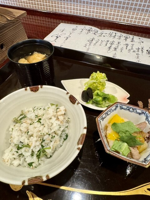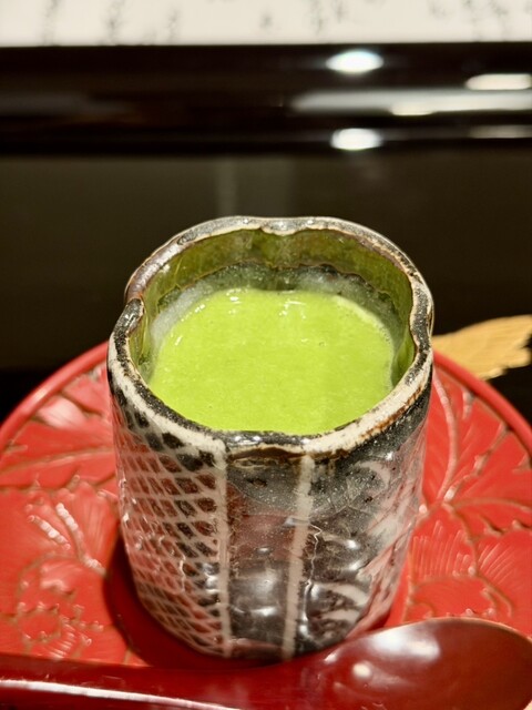 出汁がふくよかに香る茶碗蒸しに、春菊ソースをひとさじ。爽やかな苦味がふわりと広がり、驚くほどの相性の良さ。