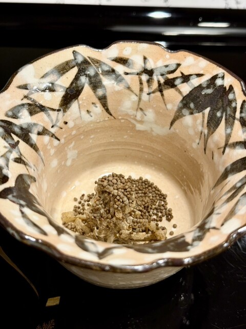 優しい味に、カマの糠漬けの風味がアクセント。良いリセット皿。