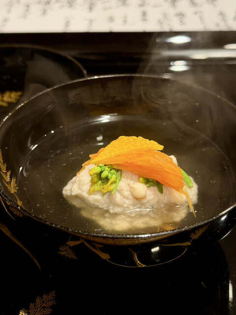 澄んだ出汁に、鮭の身と皮を叩いて作ったふわふわのつみれ。雑味が一切なく、椀物としての完成度が高い。