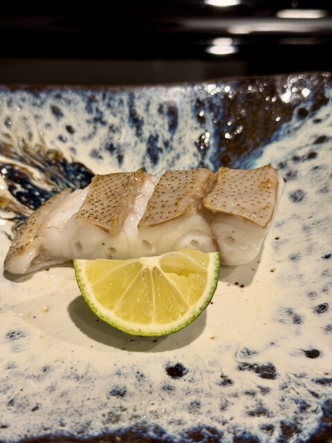 本日決まりすぎた一皿。皮はパリッ、身は肉厚、脂はじゅわり。完璧な火入れで、クエのポテンシャルを120%引き出している。圧巻。