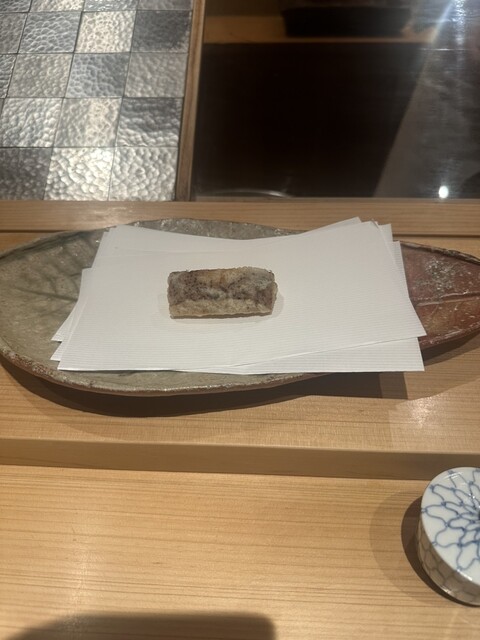 穴子を出す時に基本箸で割りますが、疑問に思い聞いてみたところ、割ることにより断面に不均一さを出すためだそうです。