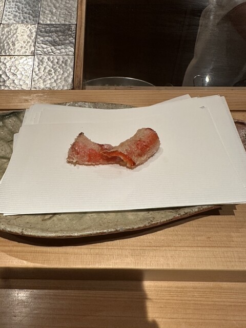 表面は油感があるのに、中心部は新鮮な魚のまま。たまに食べる梭子魚でも、普段と違った形で味わえて非常に面白いです。