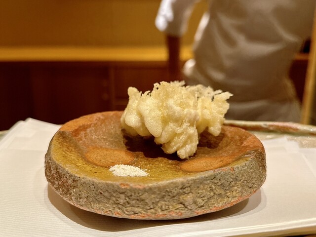 日本料理の世界から独学で天ぷらを学ばれミシュラン☆☆の天ぷら店へ、軽やかな衣と火入れによる濃縮された味わいを堪能できる天ぷらです