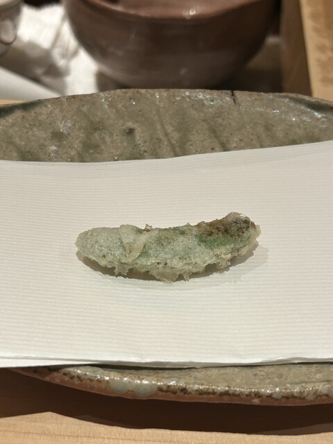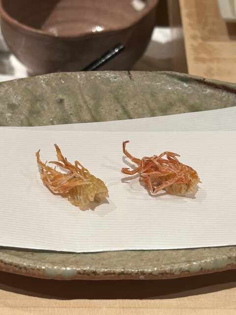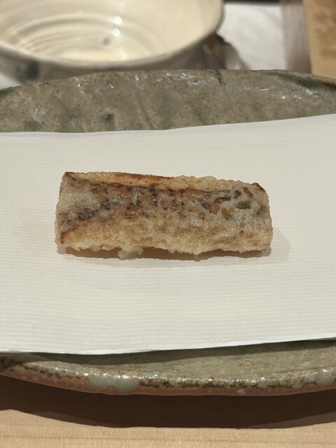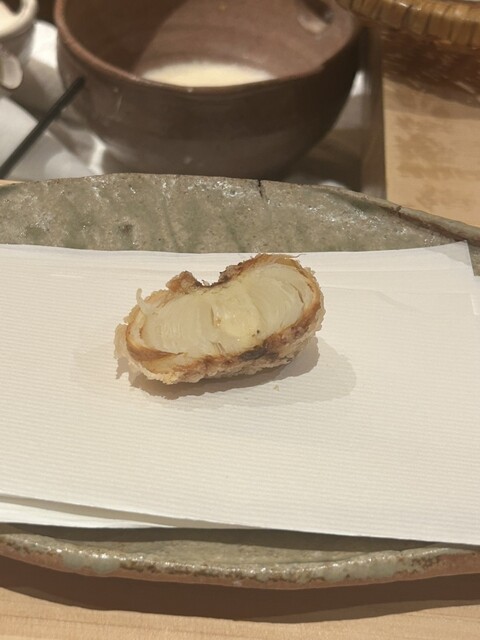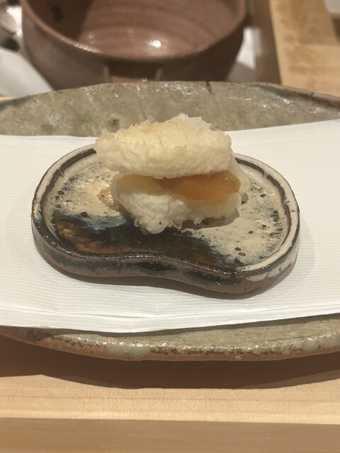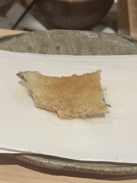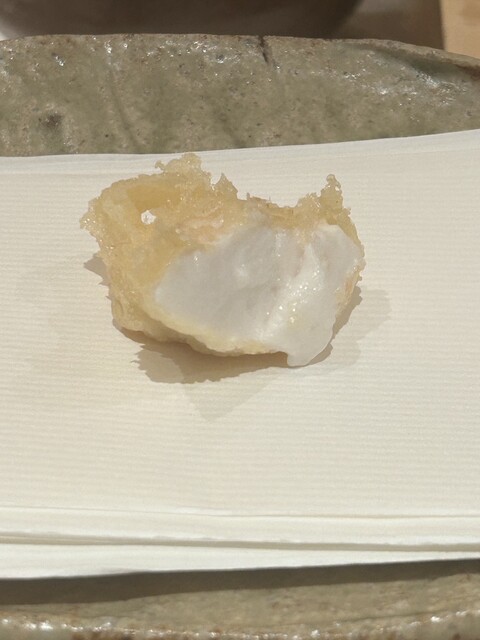 続いて最初に見せていただいたフグ白子。天ぷらは濃厚トロトロでさすがですが、そのあとのフグ皮(身、皮、真子)ポン酢に刻んだ白子天を混ぜたものが非常に贅沢な感じになってよかった