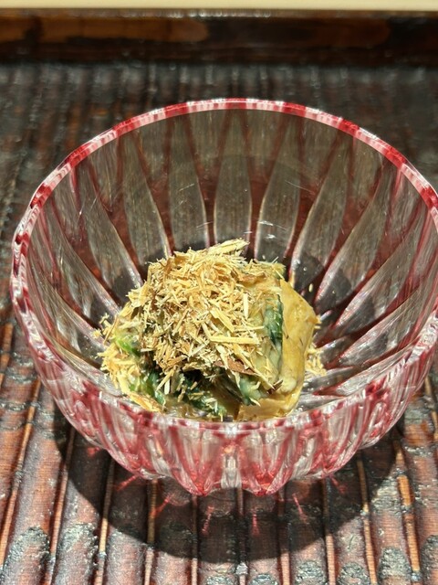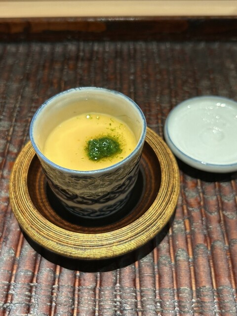 先付けはこのフグの出汁を使った茶碗蒸し。出汁がすごく濃く濃厚な茶わん蒸し