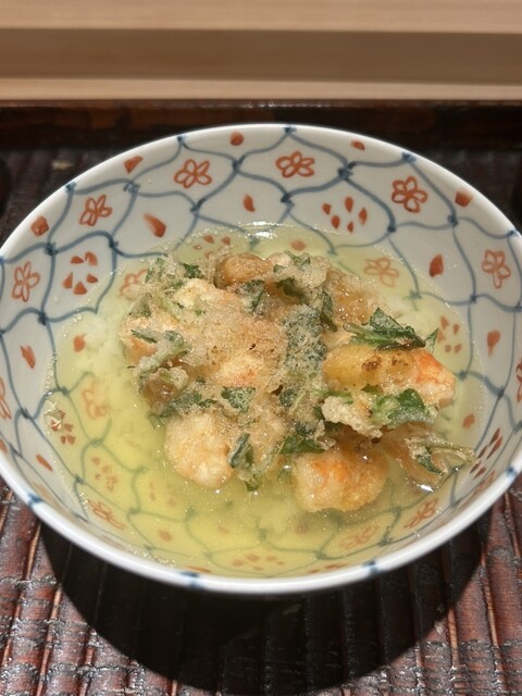 卵かけご飯は、まずは卵黄の天ぷら、続いてメレンゲをのせて、最後に海老天をのせて天バラみたいにと味変を楽しめ、天茶も美味しかったですが、1品選ぶなら卵かけご飯がおすすめです
