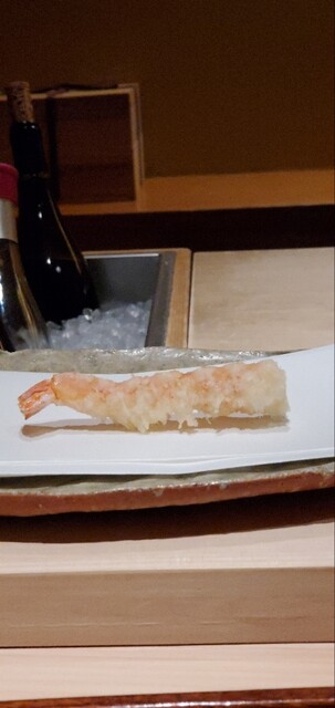 海老もしっかり揚げたものをいただき、次は半生でいただきました...