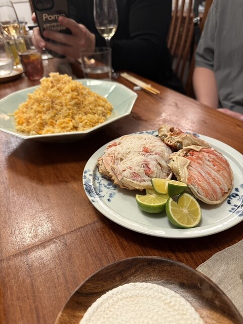 この日はカニが美味しい季節。その場でカニをほぐ...