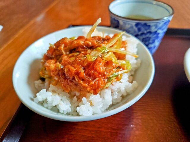 副菜の豆腐のそぼろ掛けは、香辛料の効いたややドライなそぼろが見事にマッチ!