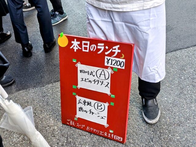 メニューはA.四川式エビチリソース、B.広東風鶏のチャーシューの2種のみ!70食まで!