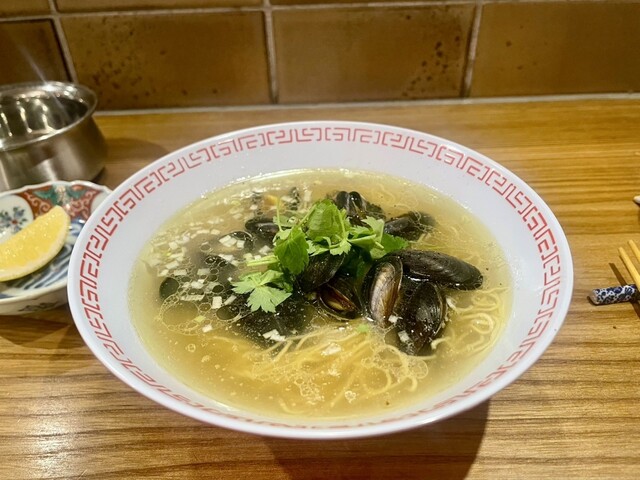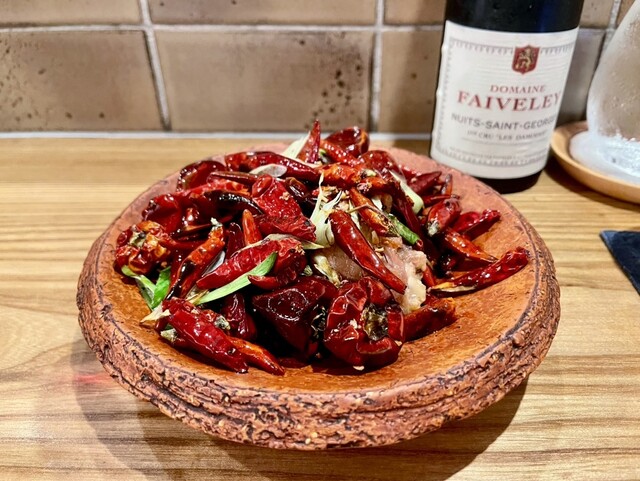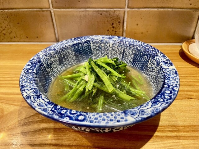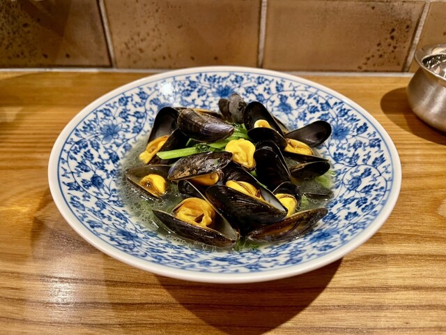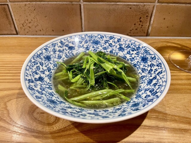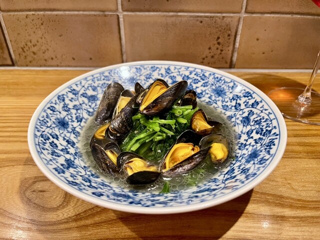 この日は久しくモンサンミッシェルのムール貝が入荷しておりいつもの空芯菜の塩炒めにアレンジしてもらいました。