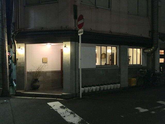 場所は、西天満の堺筋寄り、堺筋が東へカーブするY字路の西手のビルの1階にあります。