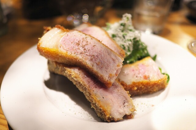 豚のカツレツ。もう常軌を逸して大きくて分厚くて。しかも肉質がとてもいい。シェフ渾身のカツ!
