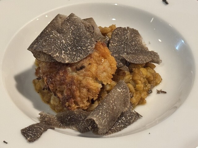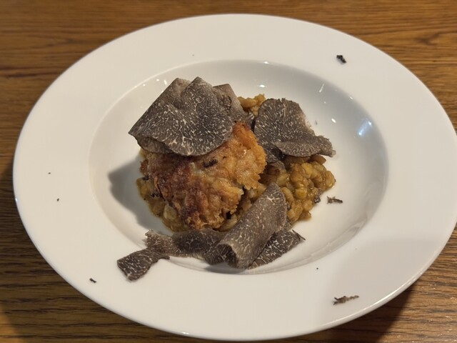 最高級トリュフと金目鯛とかと炊いた古代小麦と合わせて。