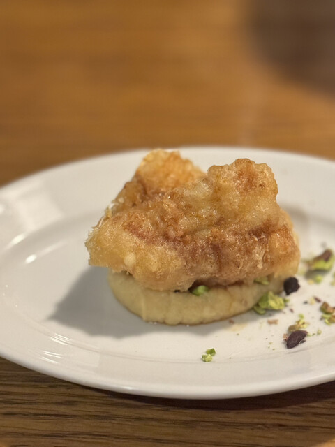牡蠣の方のパン粉?がこれまたワインといい相性になるアクセントといいますか美味しいが絶えません。