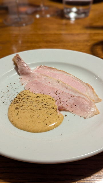 旨みある塩鱈のじゃがいもソースがワインをまた進ませる。
